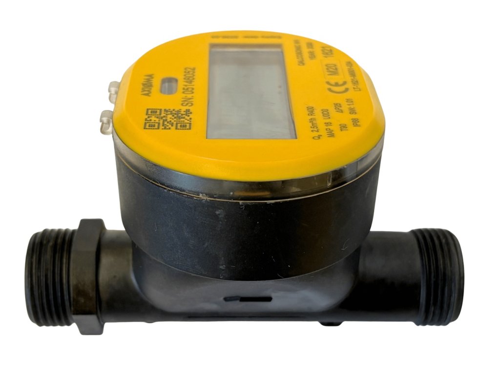 Bytový vodoměr Axioma, použitý, DN15, 110 mm, 90°C - ultrazvukový, elektronický, funkční, bez platného ověření (bez cejchu).